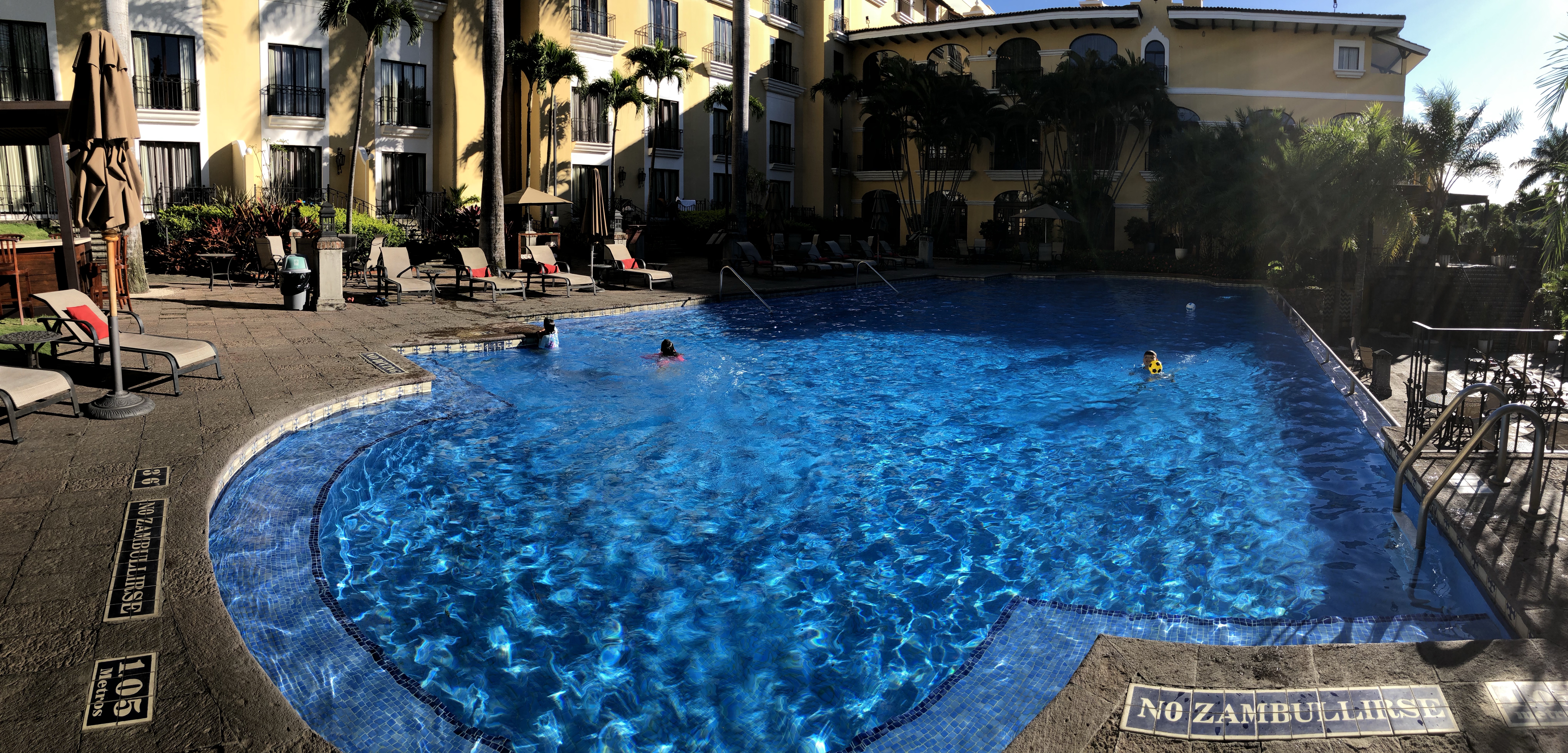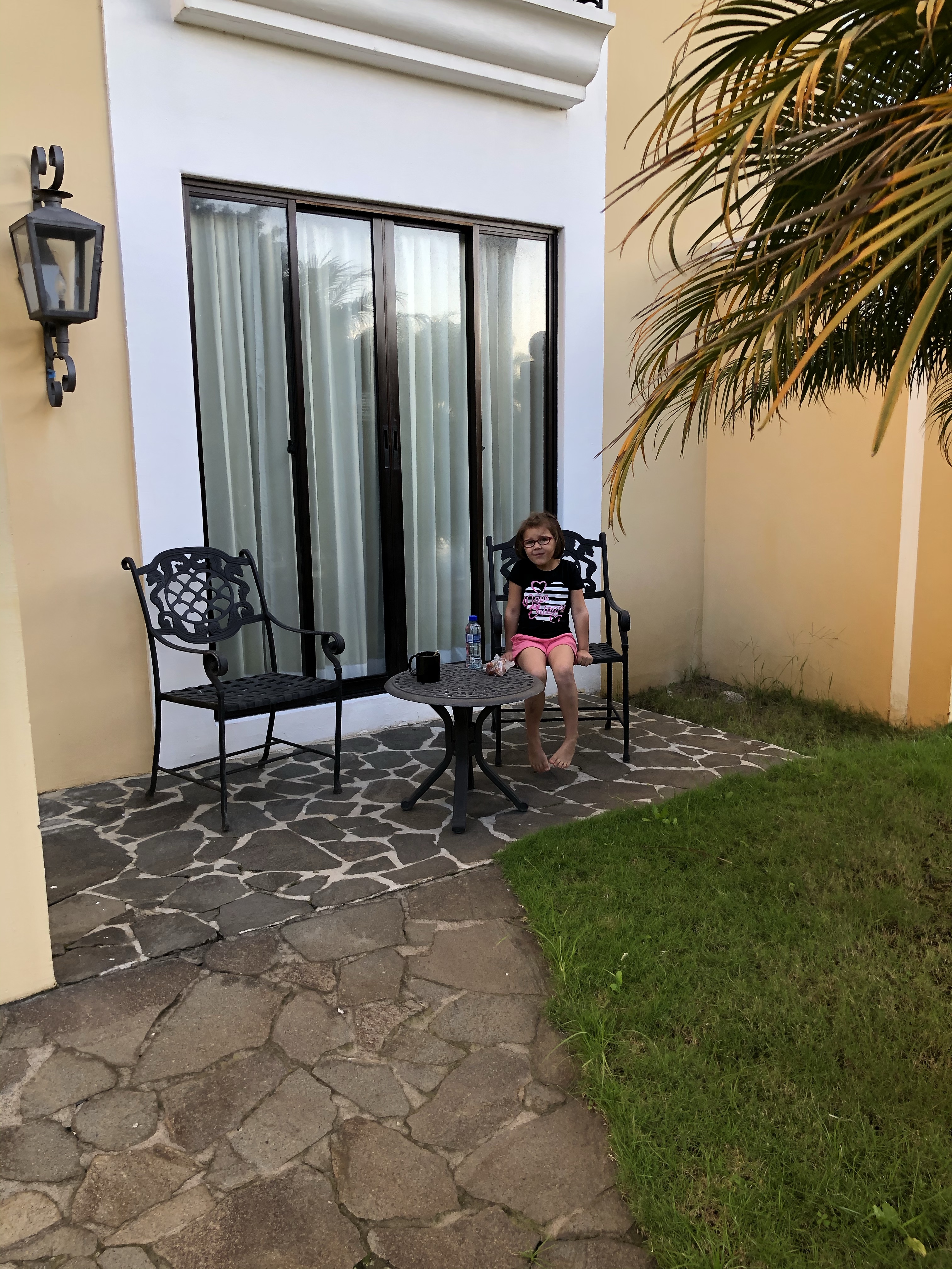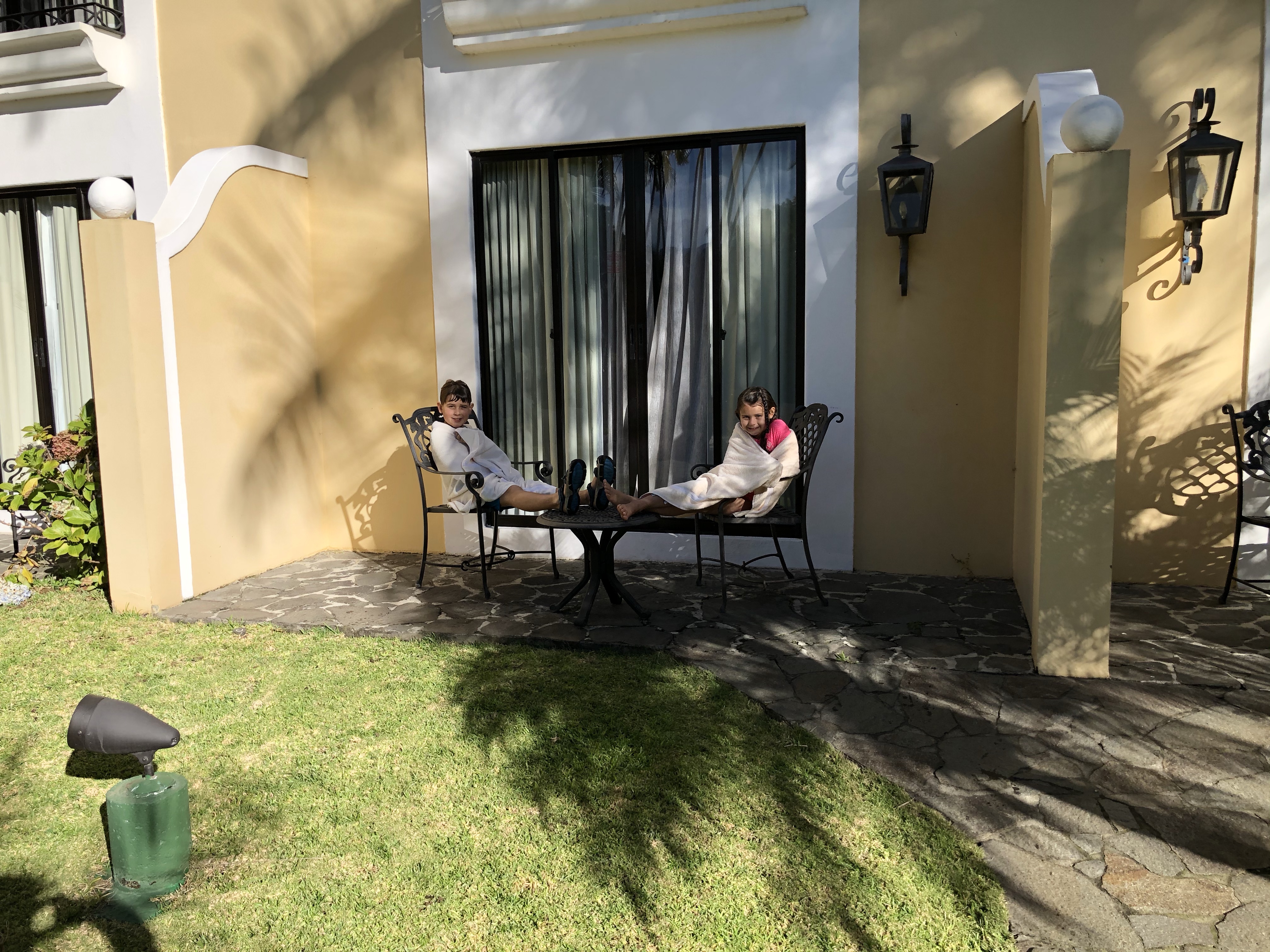 Early morning Coffee Day One at the Marriott Hacienda Belen in San Jose. Avery and Dad are on eastern time!